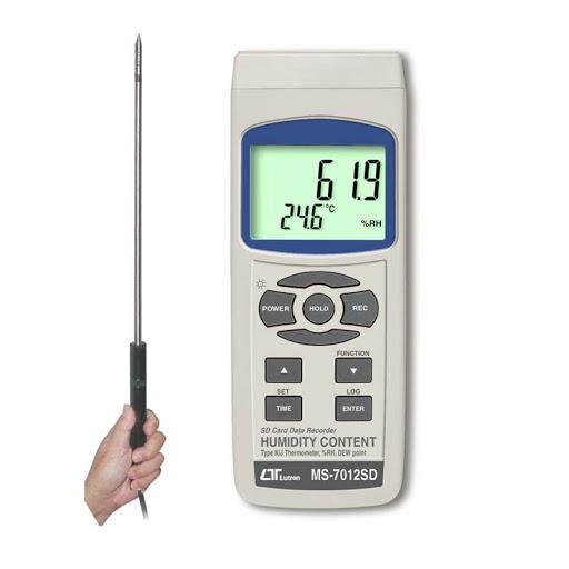رطوبت سنج لوترون مدل LUTRON MS-7012 ‚ با قابلیت اندازه گیری رطوبت هوا ‚ دمای هوا ‚ نقطه شبنم و رطوبت Wet Bulb ‚ عملکرد 4 دستگاه اندازه گیری را در یک دستگاه هوشمند و حرفه ای کنار هم آورده است . این دستگاه برای اندازه گیری رطوبت در جامدات و غلات ذرت ‚ پنبه ‚ برنج و کاغذ و ... استفاده می شود .
