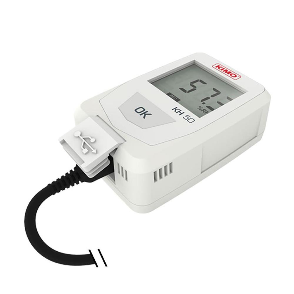 دیتالاگر دما و رطوبت کیمو KIMO KH50 دما را در بازه 20- تا 70 درجه سانتیگراد و رطوبت را از 0 تا RH% 100 اندازه می‌گیرد.