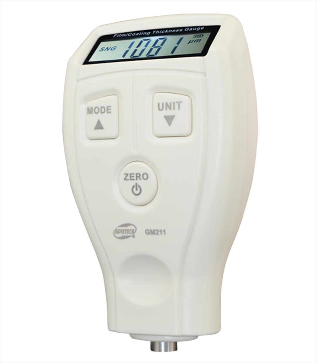ضخامت سنج رنگ دوکاره رنگ و لعاب پایه آهن و غیرآهن مدل GM211 ساخت چین با بازه اندازه گیری گسترده تا 1500 میکرون هم مناسب استفاده صنعتی بوده و هم به لحاظ اقتصادی، سبکی و راحتی کار بسیار مناسب و ایده آل، جهت تستر رنگ . خودرو می باشدضخامت سنج رنگ و لعاب بنتک مدل BENETECH GM211 ، برای سنجش ضخامت رنگ و لعاب روی فلزات مغناطیس F-N با ست فویل کالیبراسیون کامل است که مناسب اندازه گیری ضخامت پوشش سطح غیر مغناطیسی بر رو فلزات و غیر فلزات میباشد .