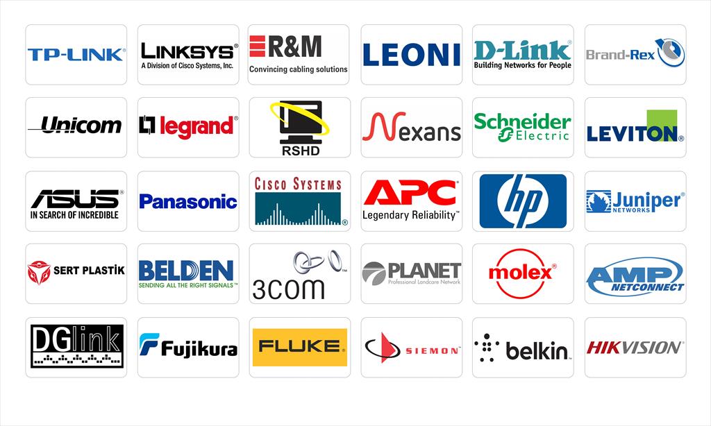 LEVITON,R&M,BRAND REX,SCHNEIDER,TPLINK,TAIKO NET,LINKSYS,DLINK,UNICOM,PANASONIC,SERT PLASTIK,SIEMON,DG LINK